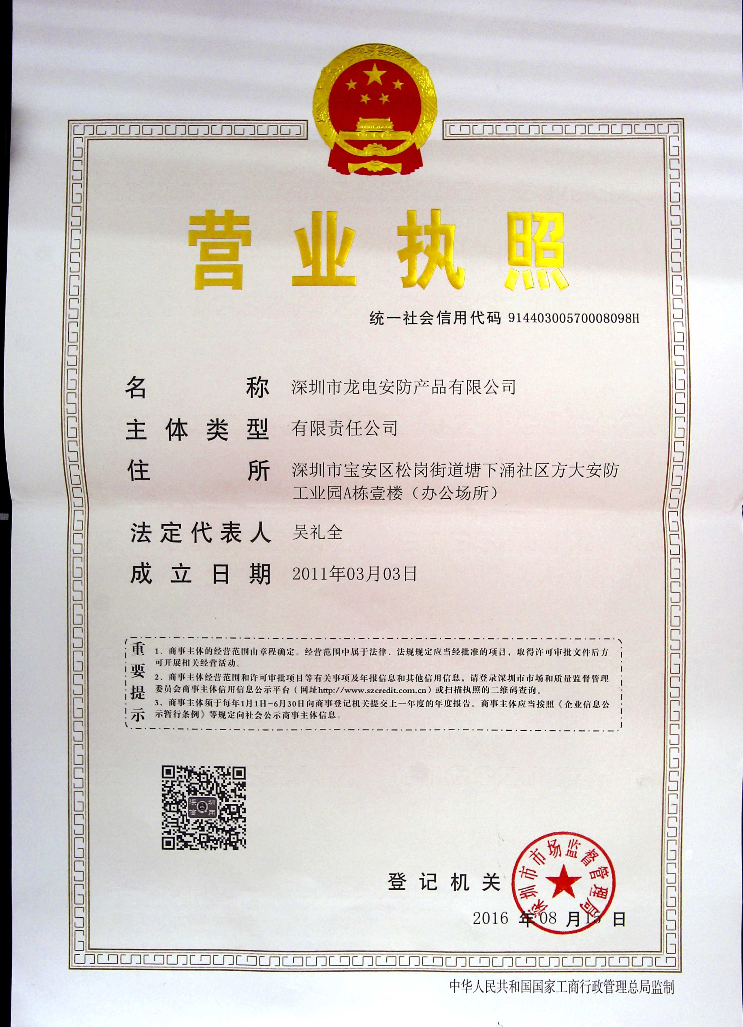 深圳市龍電安防產品有限公司是在深圳市工商局注冊,專業(yè)從事消防、安防產品研發(fā)、生產制作、銷售及安裝的綜合性科技型企業(yè)。